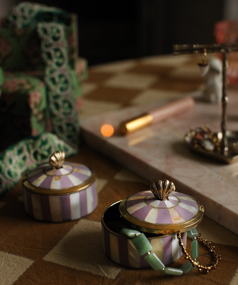 Deze doosjes zijn handgemaakt in India, van messing, resin en schelp. Als je dit unieke handgemaakte product koopt, steun je de lokale gemeenschappen waar onze producten worden gemaakt. Joepie!