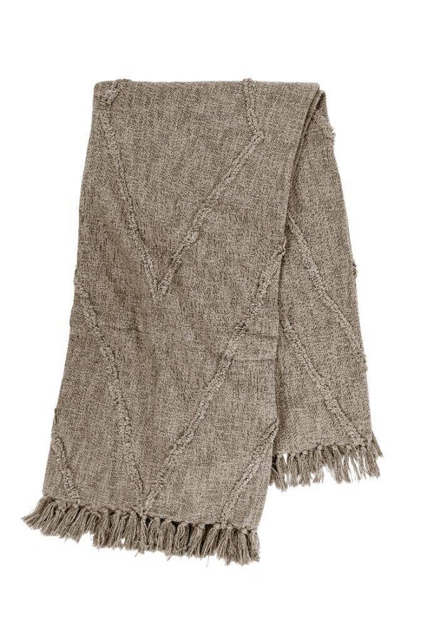 Onze mooie boho plaid, te verkrijgen in 2 kleuren : naturel en taupe . Ook de bijpassende kussens zijn verkrijgbaar in het vierkant en rechthoek.