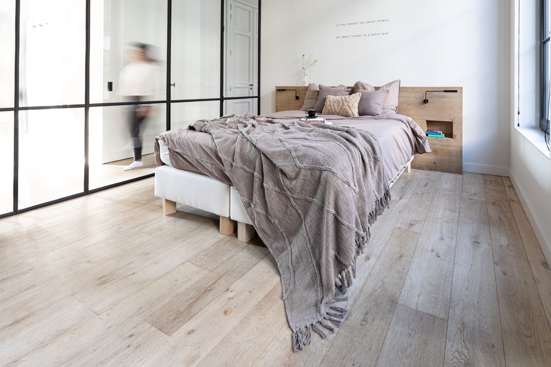Naast de mooie naturelle kleur werd deze plaid afgewerkt in een leuk gekruist motief. In dezelfde kleur, maar waarvan de dessin benadrukt werd dankzij een extra zachte lijn.